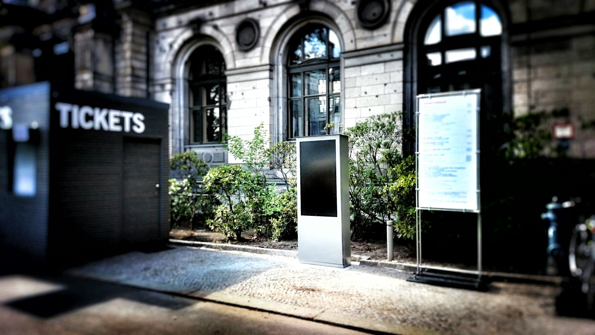 Gerade für Außenbereiche eignen sich großformatige und im Sonnenlicht gut lesbare Displays. Geschützt sind diese durch eine Sicherheitsglasscheibe. Optional sind diese Systeme mit einer Touchfunktion ausgestattet, wenn eine Interaktion gewünscht wird.